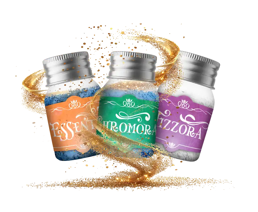 Fizzora, Chromozza, and Essentia in individual pouches (enough for one full potion per child)